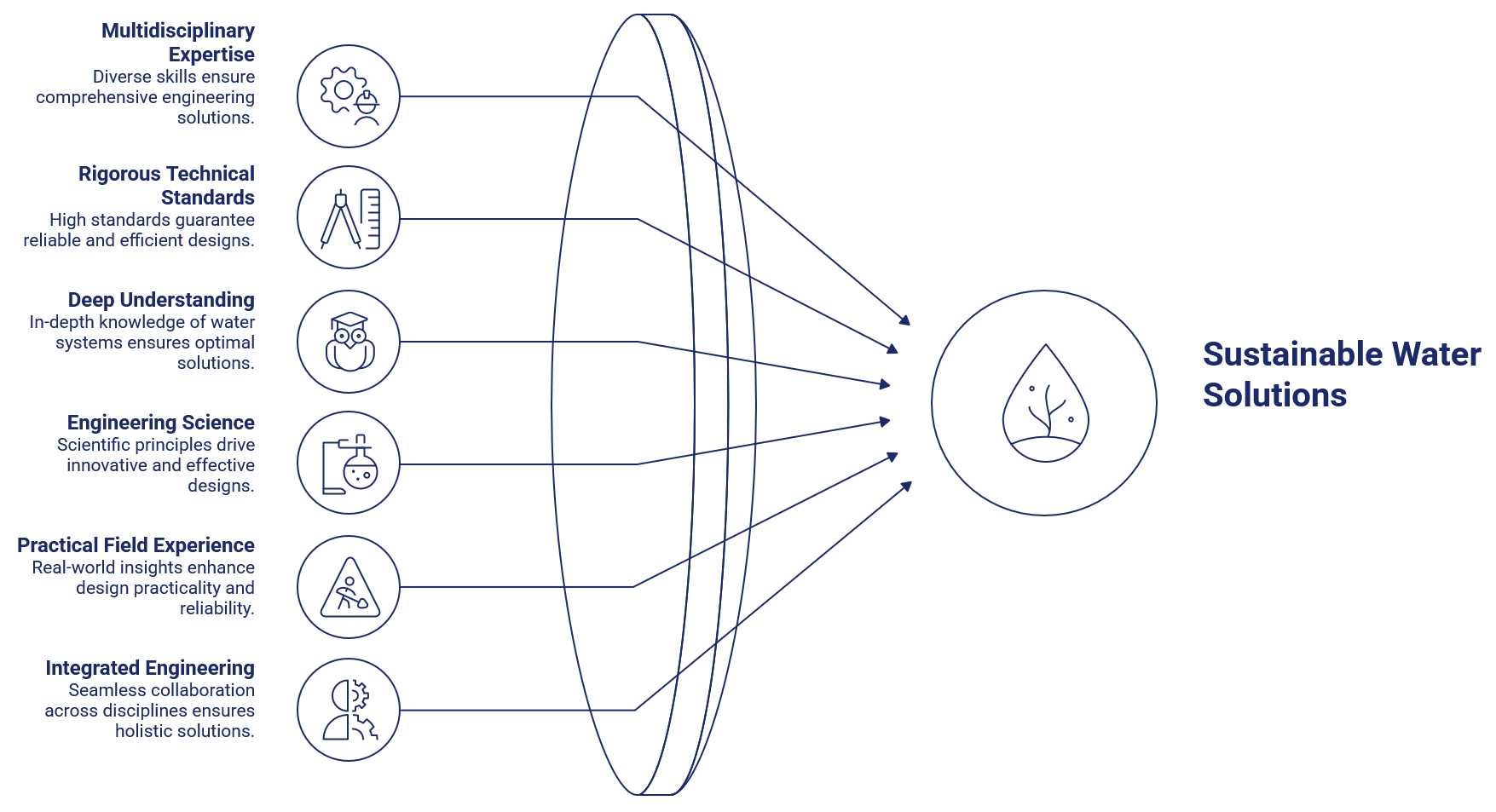 At Sadrab Sanat, our engineering solutions are built on a foundation of multidisciplinary expertise, rigorous technical standards, and a deep understanding of the complexities of water and wastewater systems. Our team integrates engineering science with practical field experience to deliver solutions that are not only technically sound but also optimized for constructability, lifecycle performance, and long-term reliability.